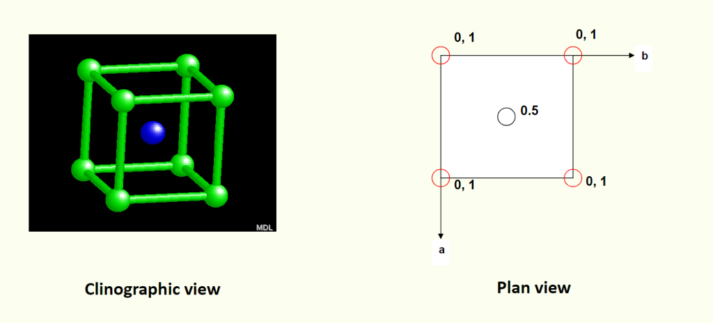- Plan view (平面图): A 2D view (looking down from one axis) to show atom positions in a layer.