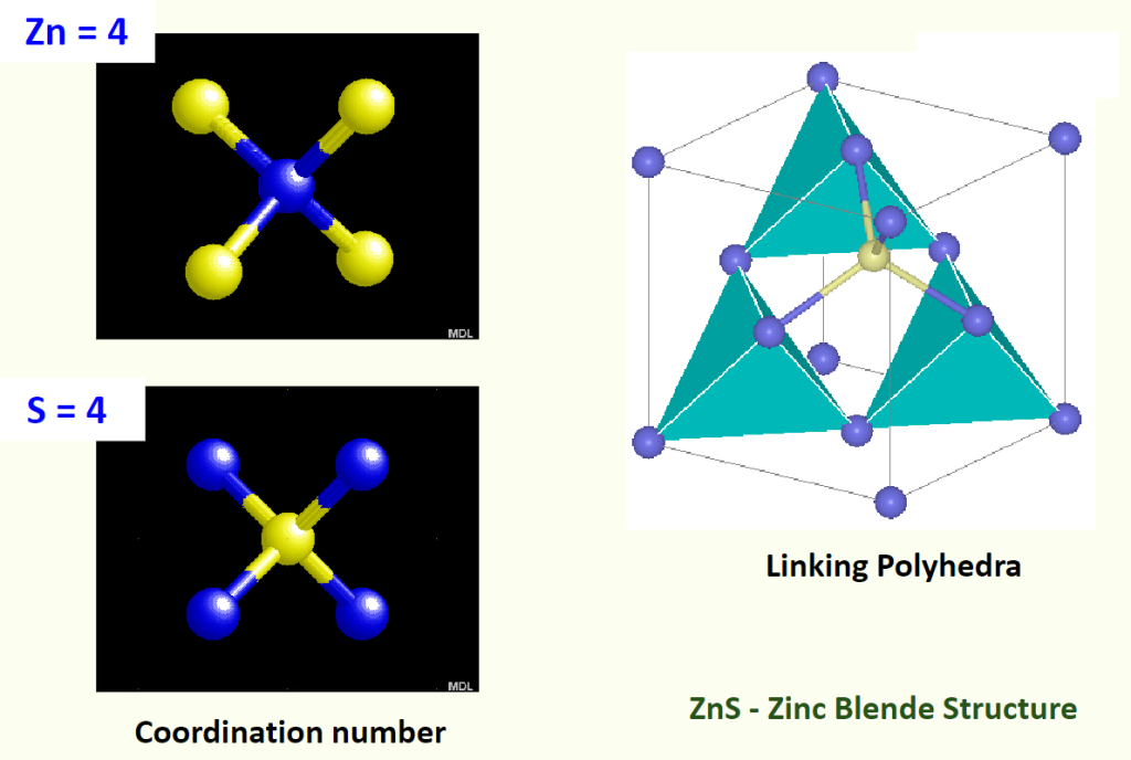 - Linking Polyhedra (多面体连接): Show how atoms form polyhedra (e.g., tetrahedra, octahedra) and how these polyhedra connect (e.g., ZnS structure links tetrahedra).