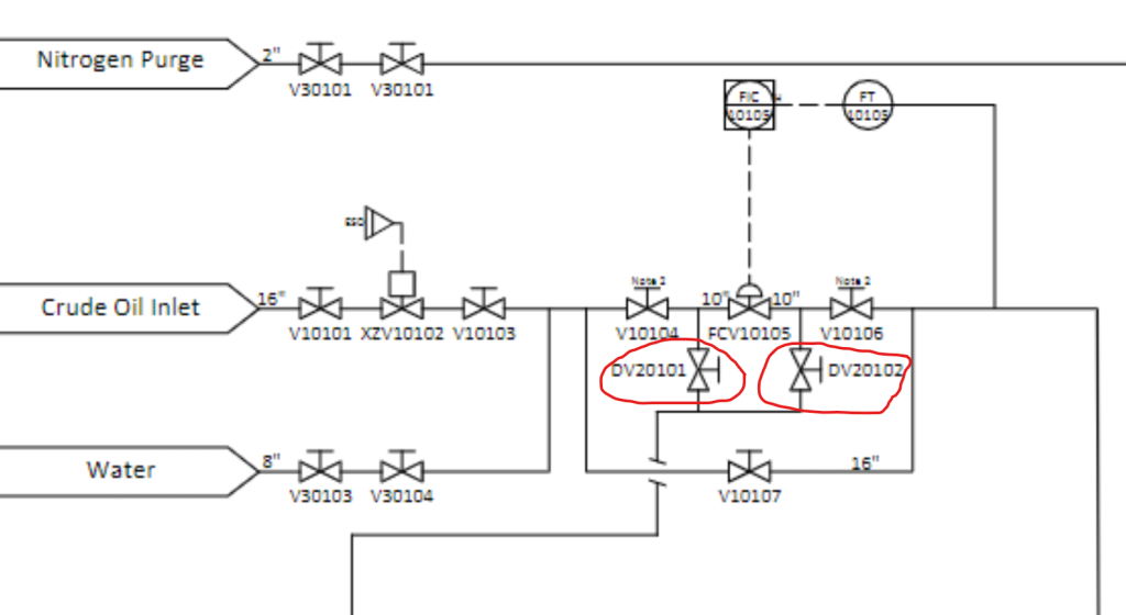 - 进料:原油入口(Crude Oil Inlet,16 英寸管道 + V10130/V10131)