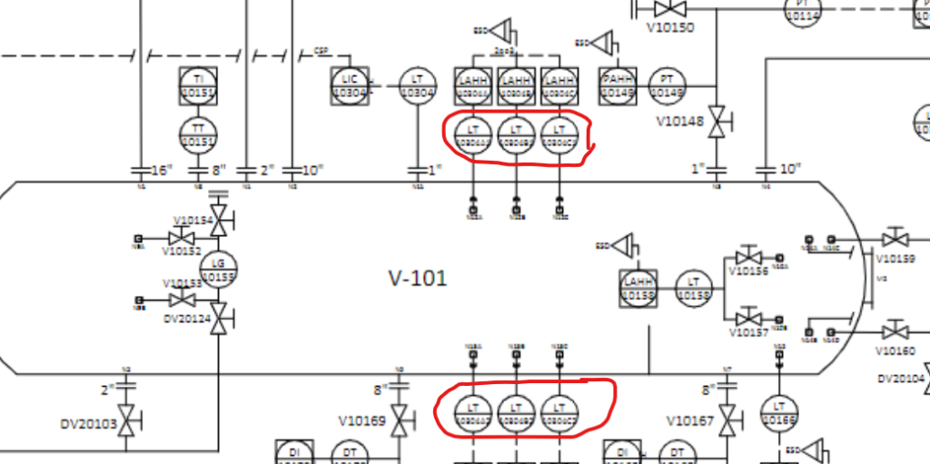 - “LALL”:低低液位报警(Low-Low Level Alarm),属于 ESD 的一部分 —— 如果 V-101 内液面过低(比如液体漏了),LALL 会触发报警,甚至让系统紧急停车