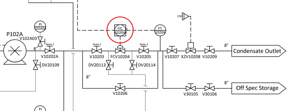 - 找到 P102A/B(冷凝水泵,英文:Condensate Pump):FIC10204 旁边,一用一备,防止泵故障导致低流量