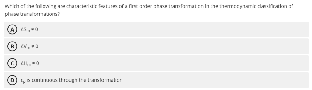 - (A) $\Delta S_m \neq 0$:正确。熵发生突变,意味着有潜热。