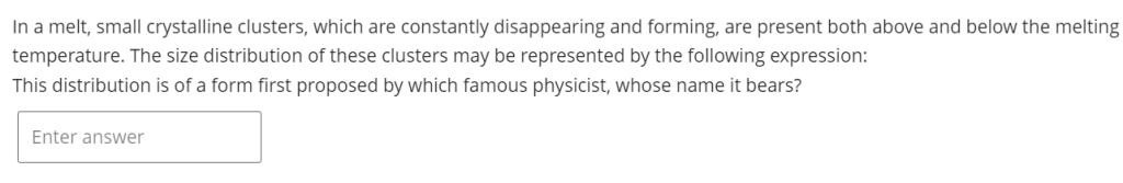 | Avrami方程定义与公式 | 文档4(CAPE2710 Week7.pdf)Week7 Task1 | e-book page162 | “the Johnson-Mehl-Avrami equation: $f=1-exp(-k t^n)$; n=4 for 3D growth (spheres), n=3 for 2D growth (discs or plates), n=2 for 1D growth (rods or needles)” |