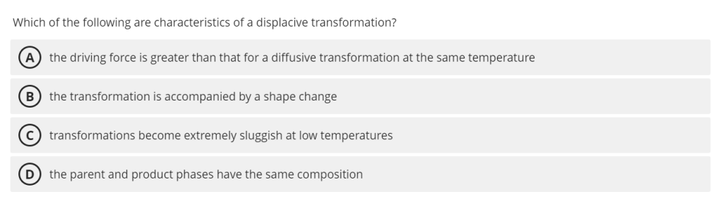 “The driving force for a transformation may be expressed in terms of supercooling or supersaturation. In which of the following transformation is it conventional to use supercooling?”