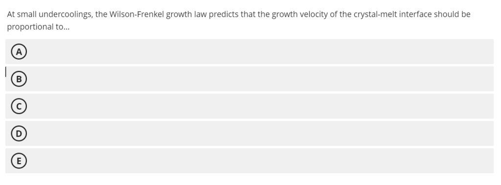 | 长大速率与温度(扩散)的关系 | 文档1(CAPE2710 Week4.pdf)Week4 Task3 | e-book page101 | “Diffusion coefficient D shows Arrhenius dependence on temperature: D = D0 exp(-Qd/RT) → D decreases significantly at low temperature” |