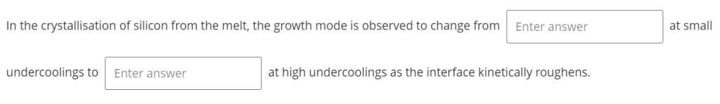1. 小过冷度(靠近平衡温度,ΔT小)——粗尺度微观结构(Blank 1答案依据)