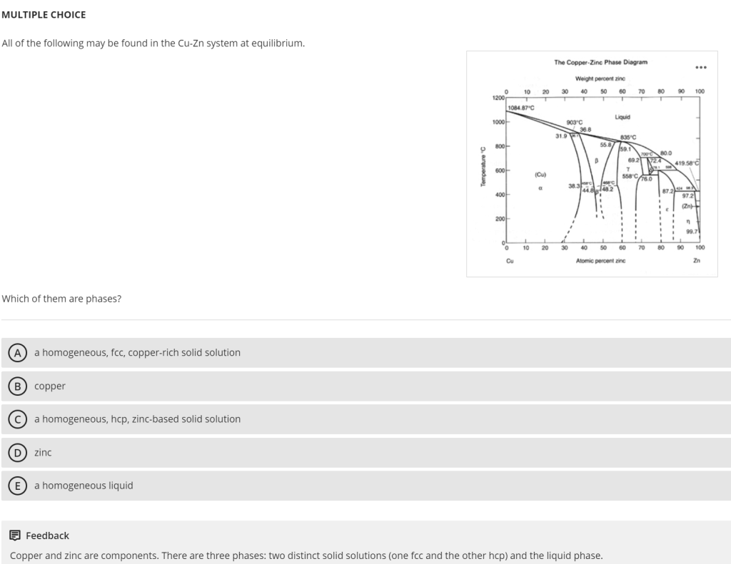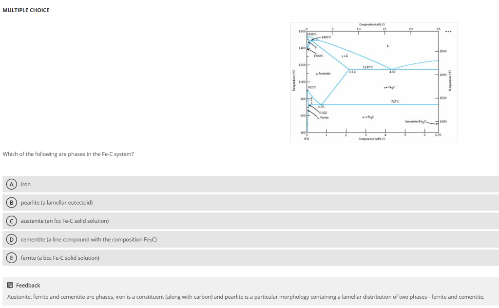 - 题干:“Which of the following are phases in the Fe-C system?”